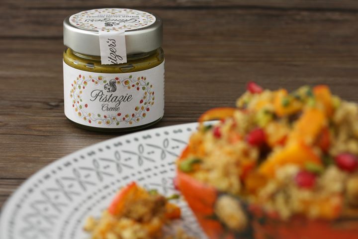 GEFÜLLTER HOKKAIDO KÜRBIS MIT PISTAZIEN-HASELNUSS COUSCOUS UND GRANATAPFEL