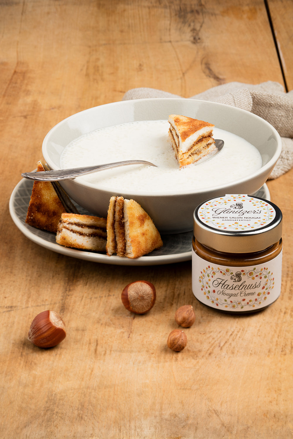 Schleckermäulchens Favorit. Für den optimalen Start in den Tag empfehlen wir wärmstens: eine dicke Schicht Haselnuss-Nougat-Creme auf einer reschen Kaisersemmel. Weckt die Geschmacksknospen aus dem Tiefschlaf. Und kurbelt die Glückshormone so richtig an. Probier's aus!